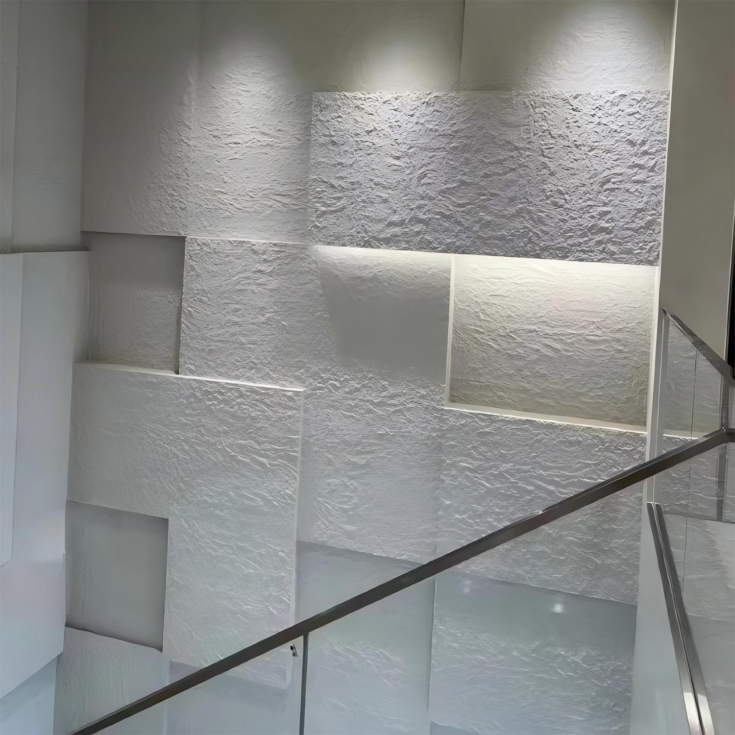 Designed for both interior and exterior decorative walls, these panels offer the dramatic visual impact of traditional split-face stone without the weight, cutting complexity, or installation limitations.